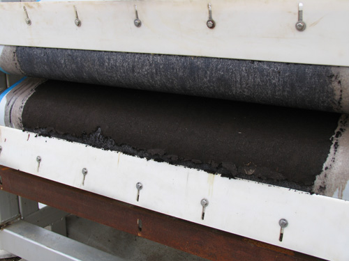 ——滤布在运行当中会左右运转,因此需要由螺丝和调偏装置来固定。在滤布的运行过程中,滤布向右偏移,那么转动右边的螺丝使右侧气动装置处于运转状态,自动调整滤布使其处于正常运行状态,相反,滤布若向左偏移,那么转动左边的螺丝使滤布处于正常运行状态。