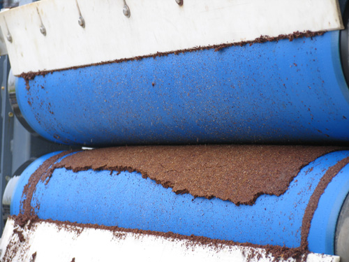 强力对辊压渣脱水机各种植物渣与污泥脱水效果图