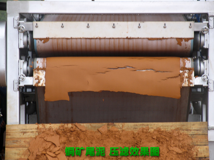 我公司生产的带式压滤机,运行费用低,处理量大,耐腐蚀性强,压滤出的滤饼含水率低。已在国内多家大型铜矿投入运行,深受客户好评,我们的设备在铜矿泥浆压滤上的功效使越来越多的铜矿厂选择了我们,而淘汰了过去使用的箱式压滤机和板框压滤机。如云南某矿业等(我们可以带您一同去客户污水处理现场考察)选用我厂多台压滤机,运行效果良好。