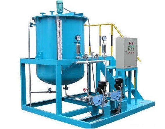 在带式压滤机较早絮凝装置基础上将絮凝罐中增加挡板,目的是让絮凝更加彻底,达到更好的处理效果。但是考虑到既要用管道混合器,又要使用絮凝罐,这样还不如把两者合而为一,建议取消管道混合器,采用絮凝搅拌罐。也就是在絮凝罐中增加一台搅拌机进行絮凝搅拌,同样也是保证絮凝反应更加充分,而且絮凝效果可以直观地从絮凝搅拌罐的观察窗中反应出来。