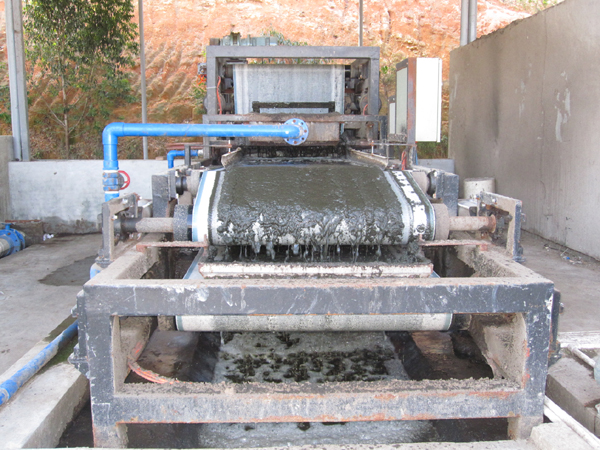 污泥处理工艺:污泥收集池-污泥泵-加药设备-污泥脱水机-泥饼